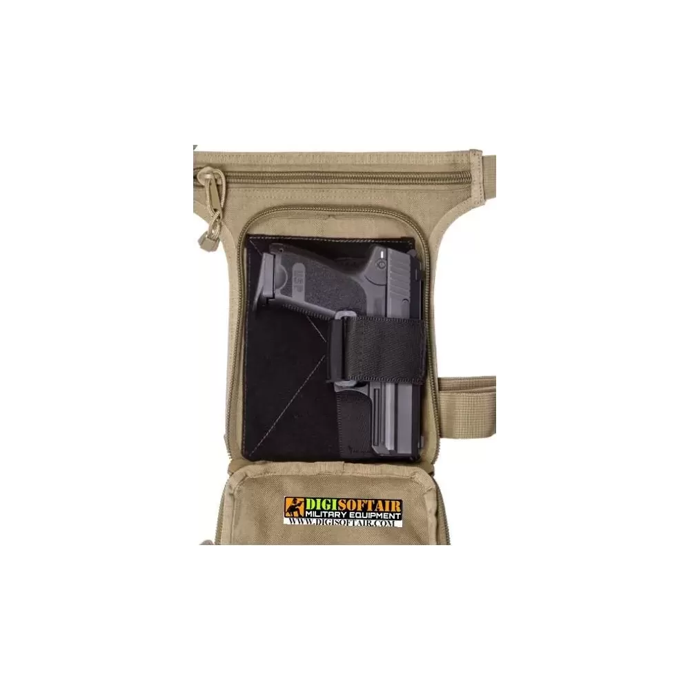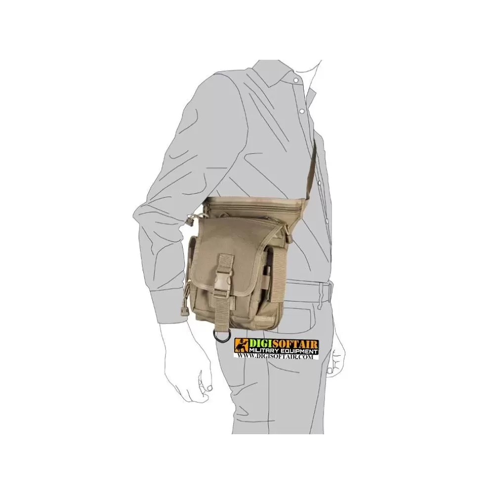 Double uses belt for to use as shoulder strap or as standard belt on the hip. Thigh lace for a better stability during sport activity. Large compartment with fast open system compatible with Velcro System, it is possible to attach inside an holsters and/or various accessories. Other pockets to carry several other objects.