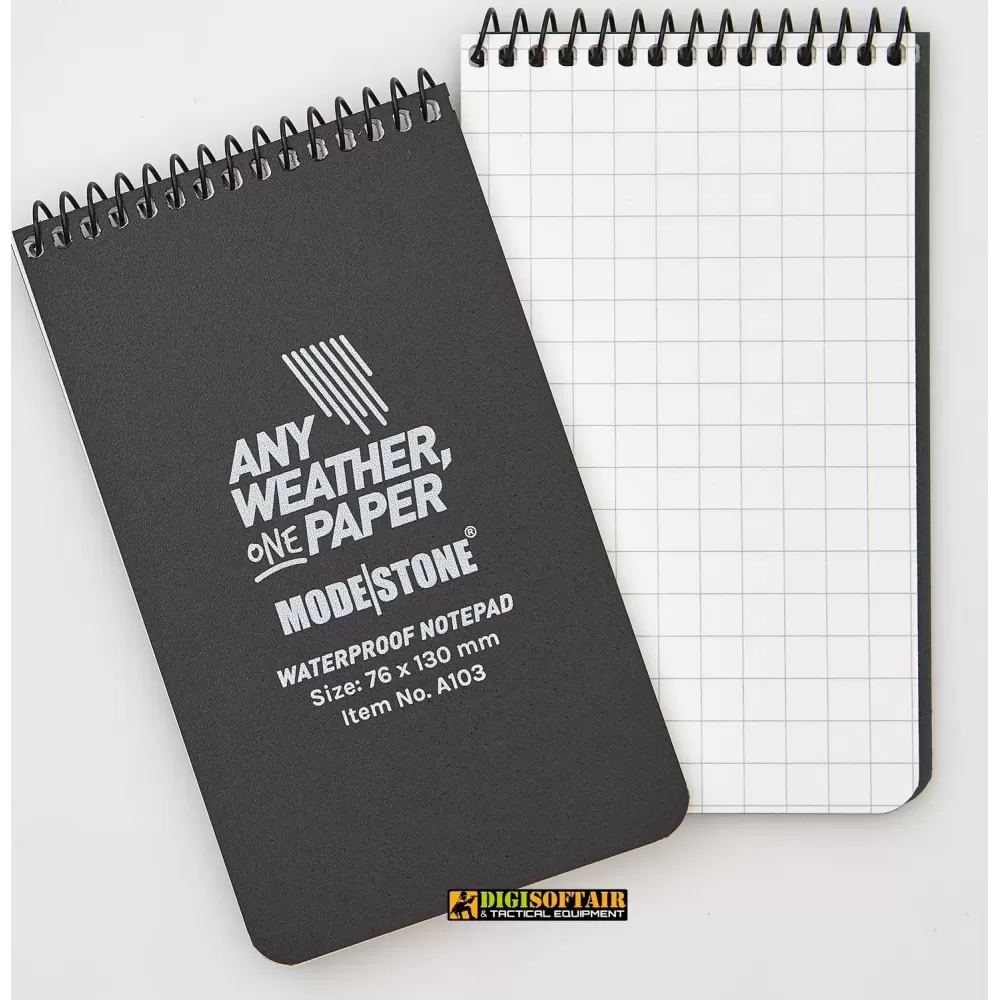 The Modestone notebook developed for field use is water, dirt, grease, rub, fold resistant, tear resistant, and insect-eaten. You can write in the notebook with a lead or ballpoint pen in the usual way.