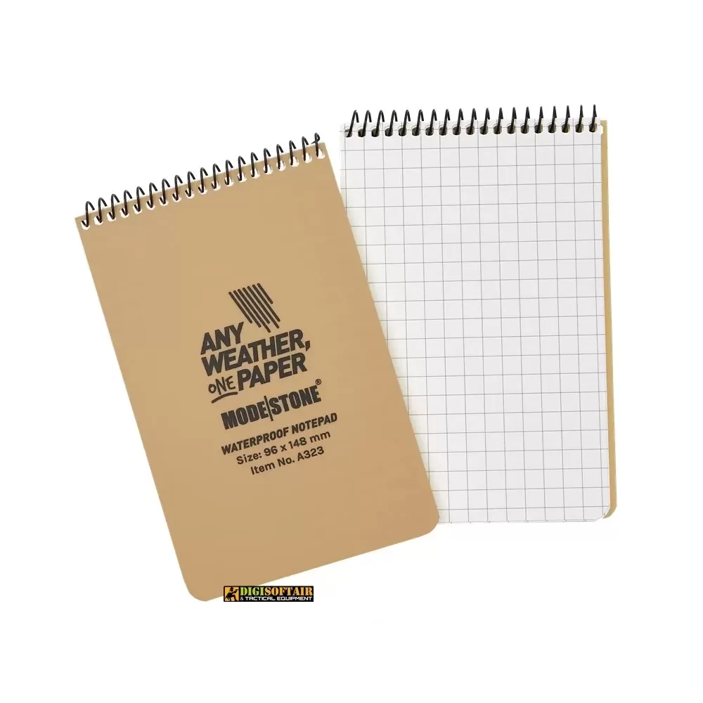 The Modestone notebook developed for field use is water, dirt, grease, rub, fold resistant, tear resistant, and insect-eaten. You can write in the notebook with a lead or ballpoint pen in the usual way.