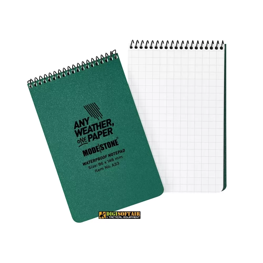 The Modestone notebook developed for field use is water, dirt, grease, rub, fold resistant, tear resistant, and insect-eaten. You can write in the notebook with a lead or ballpoint pen in the usual way.