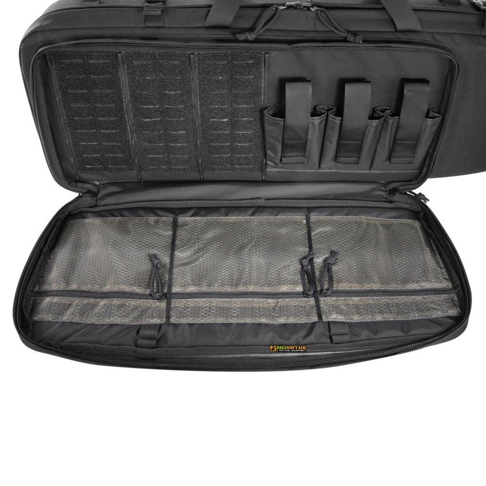 Padded weapon bag for two mid-range weapons up to 95 x 26 cm, stowable backpack straps, outer pocket with 3 mag pouches and internal MOLLE panel.
