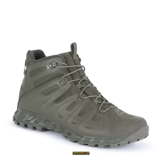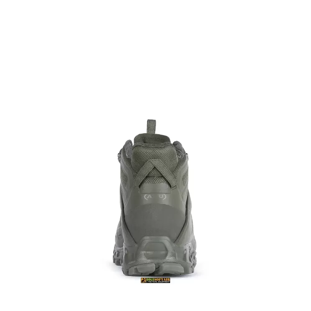 La suola, dotata della tecnologia esclusiva Elica Natural Stride System, ottimizza l’efficienza del passo, migliorando la biodinamica e l’agilità del movimento. La mescola Vibram® Megagrip garantisce un’aderenza eccellente su superfici bagnate, rendendo questa scarpa un alleato fondamentale in operazioni tattiche.