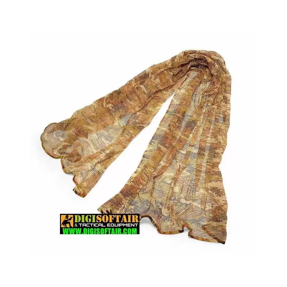 Qesta sciarpa a rete realizzata in cotone 100%, può essere utilizzata con qualsiasi condizione atmosferica e ampiamente utilizzata per mimetizzarsi o proteggersi dalla sabbia. Eccellente elasticità e resistenza all’abrasione in condizioni di asciutto o bagnato.