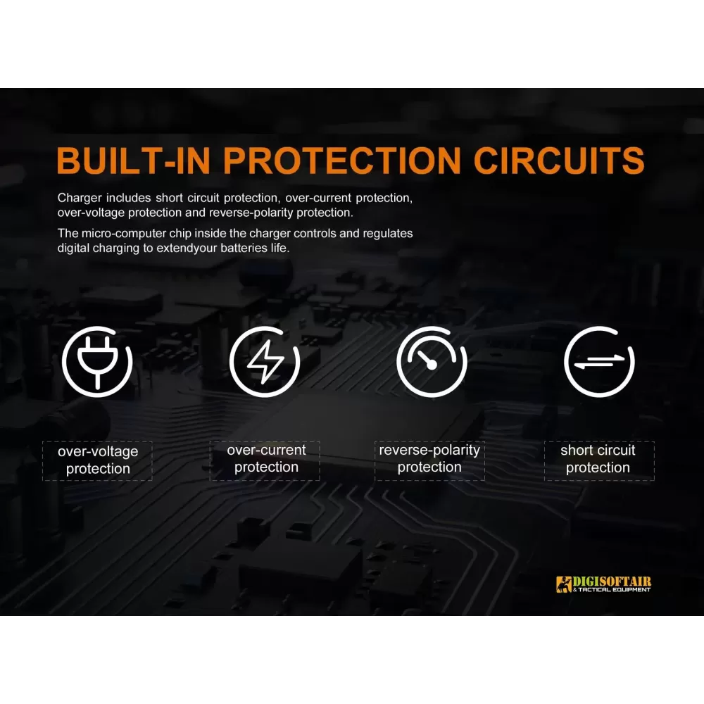 Grazie alle dimensioni compatte (123 × 62 × 30 mm) e al peso di circa 92 g, il Fenix ARE-D2 è perfetto per l’ambiente tattico, outdoor o per la gestione di batterie da attrezzature operative. Concludendo: un caricabatterie versatile, affidabile e di facile utilizzo — ideale per chi gestisce sistemi a batteria in ambito softair, militare o professionale.