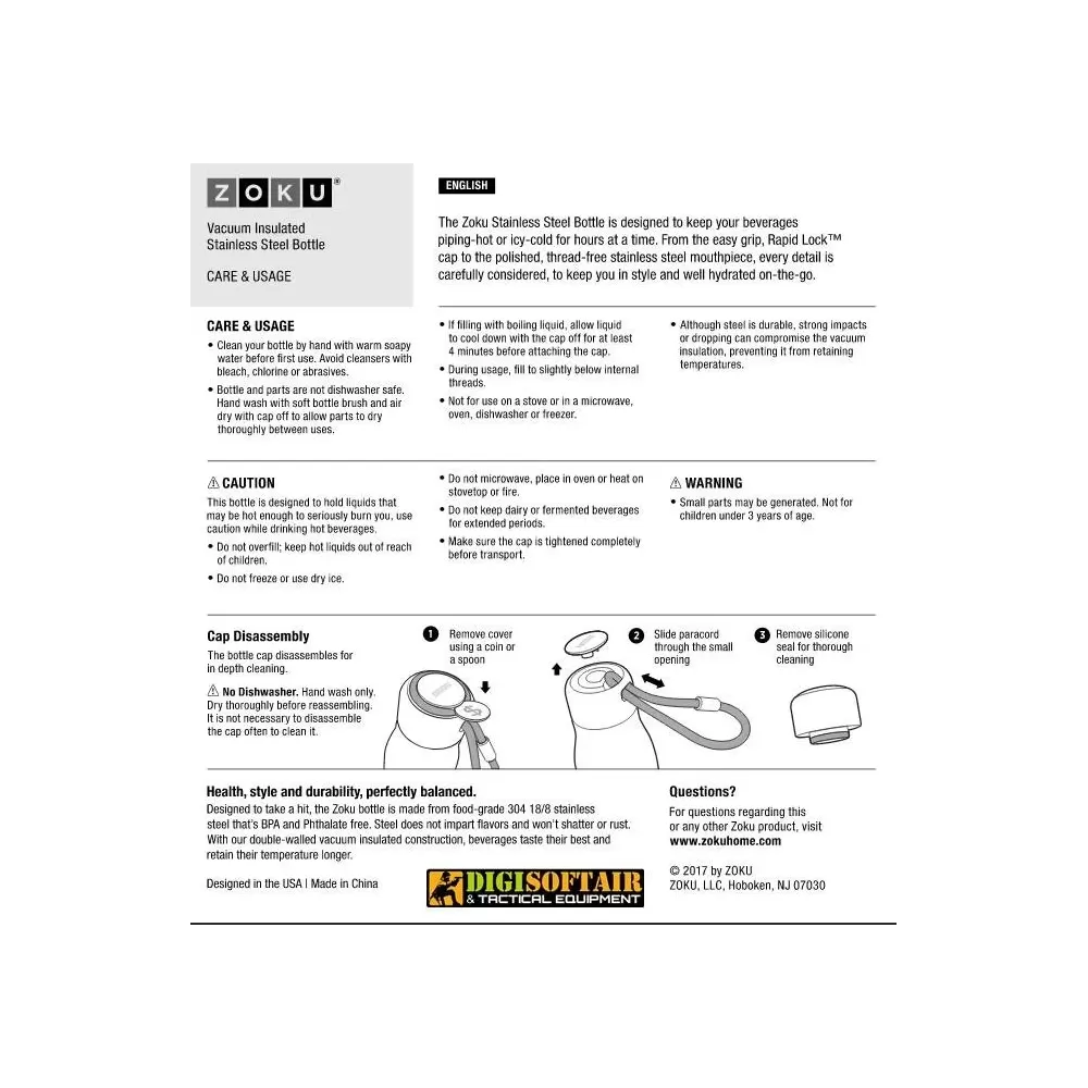 Contenuto della confezione: 1 × borraccia Zoku 25oz (bottiglia + tappo).