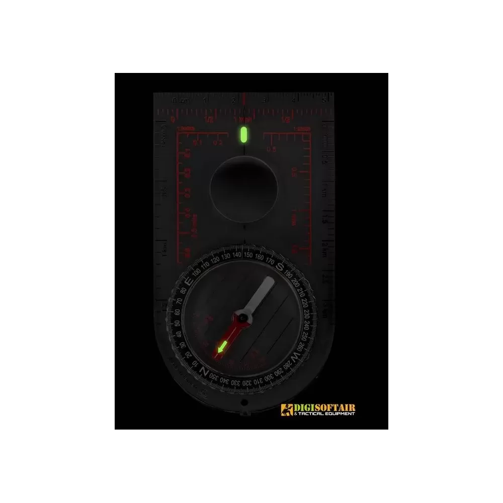 La bussola è riempita di liquido per una maggiore affidabilità. Per fornire le migliori capacità di navigazione, la bussola è dotata di lunetta girevole con scala angolare, righelli in centimetri e pollici e 4 scale cartografiche