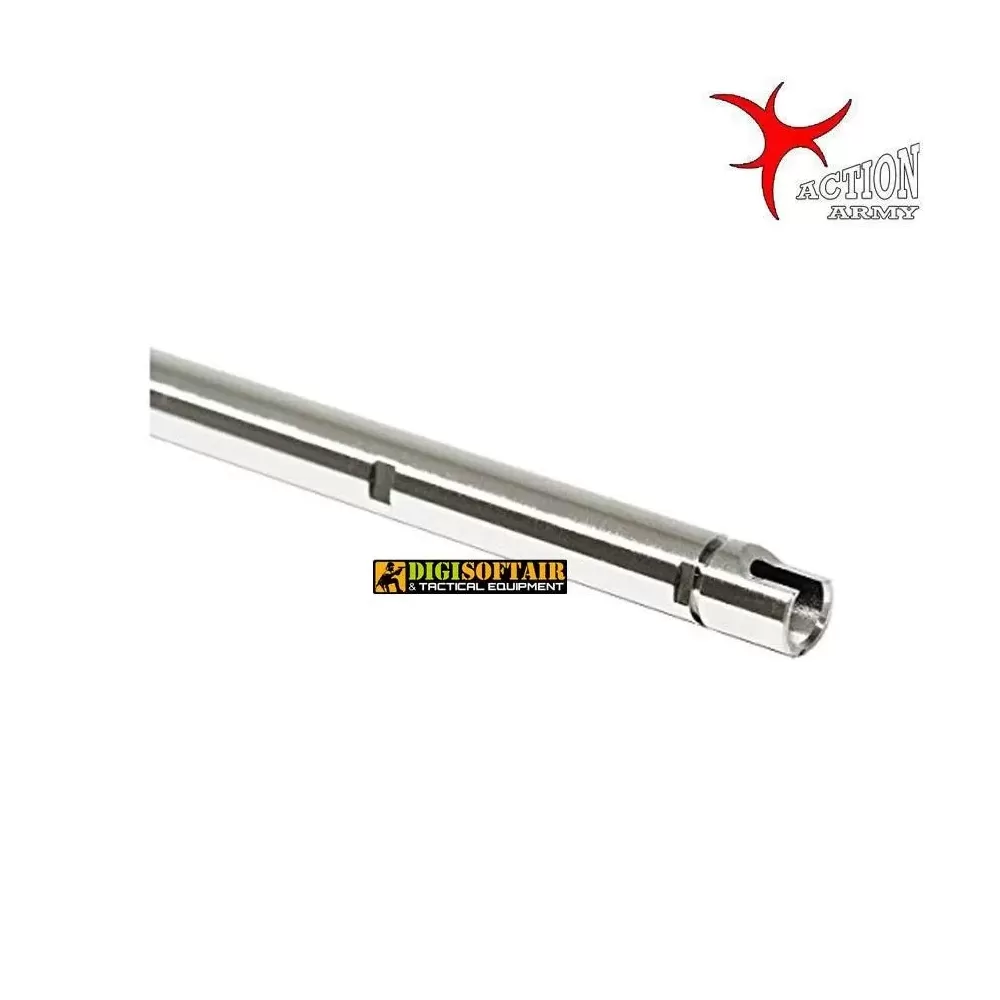 Canna interna di precisione Action Army, diametro 6,01 mm e lunghezza 430 mm, progettata come ricambio/upgrade per repliche stile VSR-10 per migliorare consistenza e accuratezza.