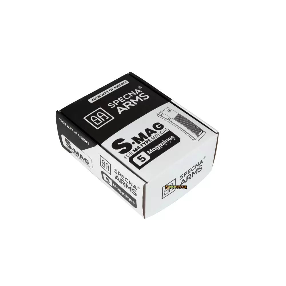 Specna Arms presenta i caricatori in polimero S-Mag. Si caratterizzano per la loro costruzione compatta e resistente e per il design liscio. Degna di nota è la texture caratteristica composta dai loghi Specna Arms. Il caricatore è realizzato in polimero resistente e ha una capacità fino a 380 BBs. La costruzione unica rende questa replica compatibile con la maggior parte delle repliche disponibili sul mercato e ideale per vari porta caricatori, Il S-MAG facilita un'alimentazione senza interruzioni delle BBs, anche a velocità di fuoco elevate.