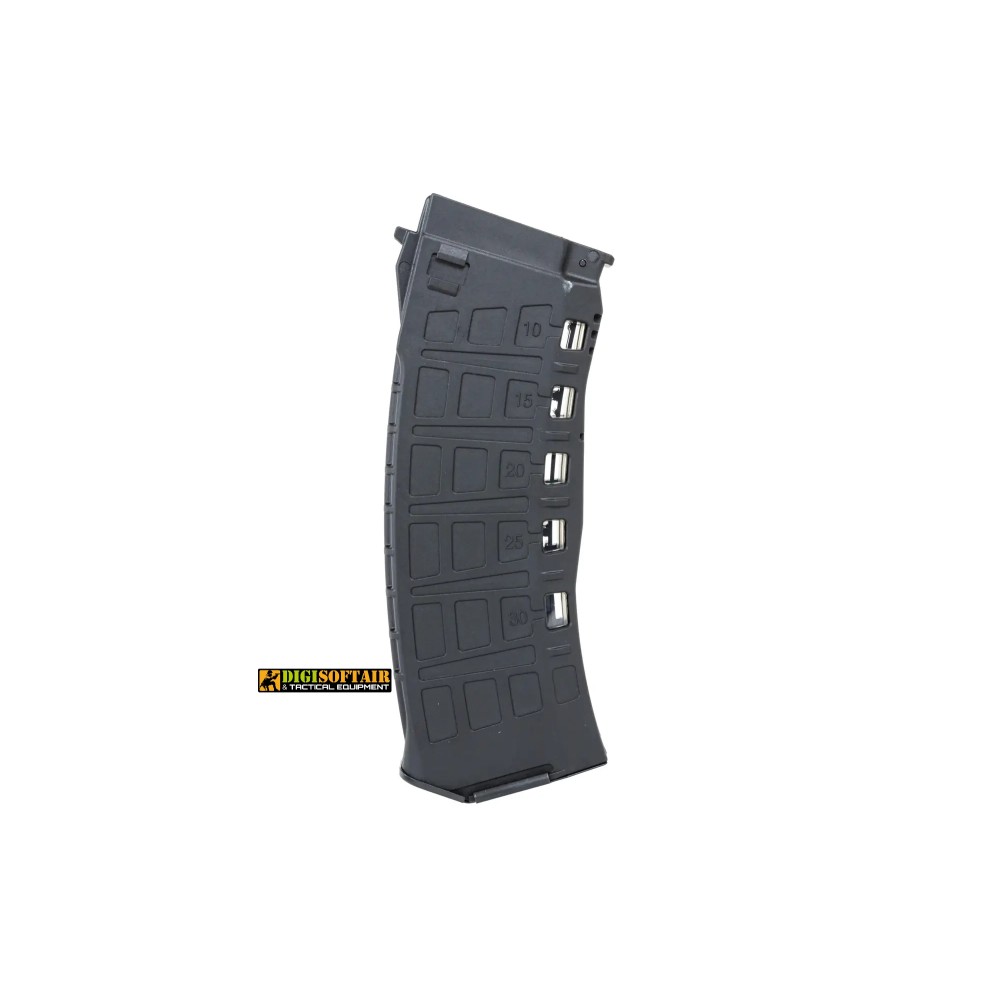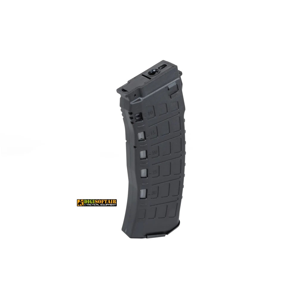 Con questo caricatore potrai affrontare sessioni estese senza dover ricaricare frequentemente, mantenendo flusso costante di fuoco e affidabilità meccanica.