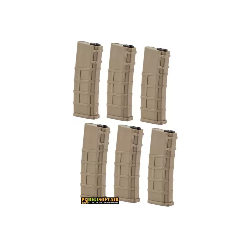 Fornisce ricambi multipli per sessioni prolungate senza dover ricaricare frequentemente, ottimo soprattutto in addestramento o uso intensivo; costi per ricarica diluiti sul set; colore tan che riduce il riflesso, materiale leggero per non alterare il bilanciamento della replica.