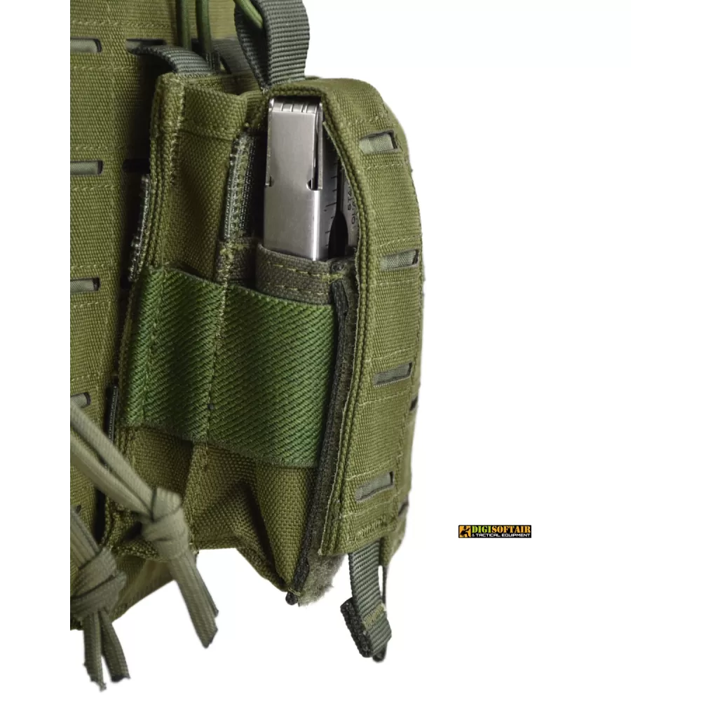 - 4 tasche per caricatori M4/AK con fermo elastico regolabile per un'estrazione rapida.