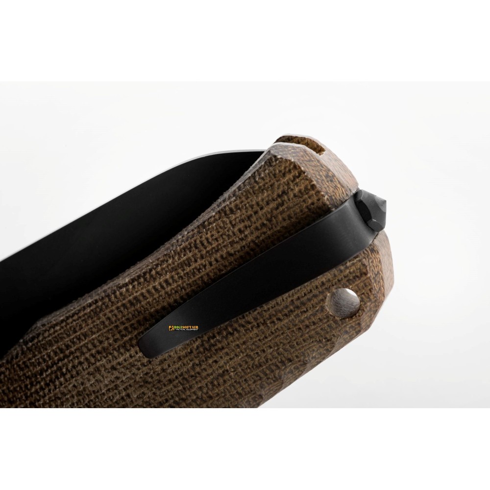 Coltello chiudibile EDC costruito con tecnologia SOLID®, manico in Canvas Micarta verde e lama Sleipner finitura nera; progettato per chi cerca un EDC compatto, resistente e con apertura fluida.