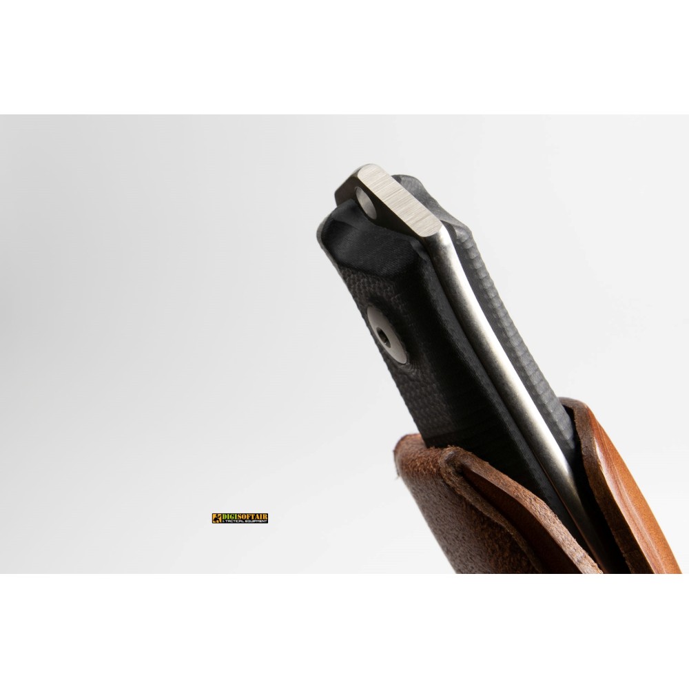 Progettato per chi vive l’outdoor seriamente, il B41 combina geometrie classiche da bushcraft con materiali moderni. La lama in acciaio Sleipner e la finitura stone-washed facilitano l’intaglio e riducono la visibilità di graffi e segni d’uso; il profilo e lo spessore favoriscono sia il carving sia le operazioni più resistenti. L’impugnatura in G10 offre presa salda e durata elevata anche in condizioni avverse, mentre il codolo piatto posteriore permette l’uso in abbinamento all’acciarino mantenendo il coltello nel fodero in sicurezza. Il B41 è pensato per essere un attrezzo pratico, dal design immediato e funzionale, adatto a escursionismo, campeggio e lavori da campo più impegnativi. Fornito con fodero in pelle sagomato e confezione protettiva.