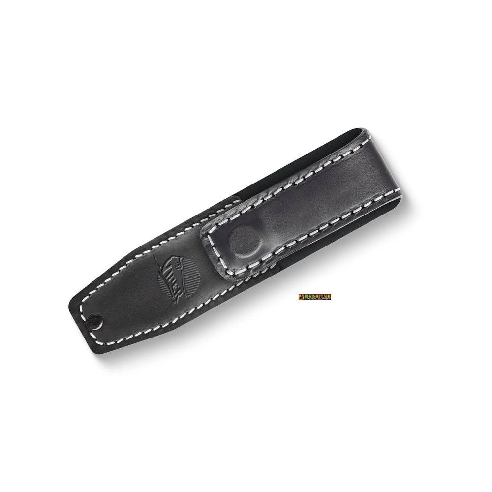 Il coltello viene fornito con un fodero in pelle nera dotato di clip magnetica, ideale per il porto in tasca o su cintura.