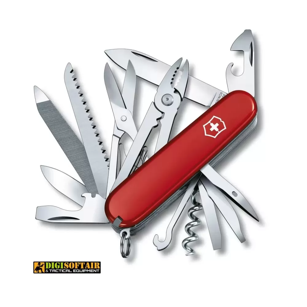 Swiss Army Knife dalle prestazioni versatili, il Handyman di Victorinox in versione 91 mm rosso è pensato per appassionati di outdoor, softair, forze dell’ordine e hobbisti che necessitano di un unico strumento per le attività quotidiane e tecniche. Ogni dettaglio di questo multiutensile è studiato per offrire soluzioni rapide e affidabili: dalla lama affilata alla pinza con tagliafili, fino alla seghetto per legno e metallo, tutto concentrato in un ingombro compatto che si ripone comodamente in tasca o nella custodia di nylon inclusa.