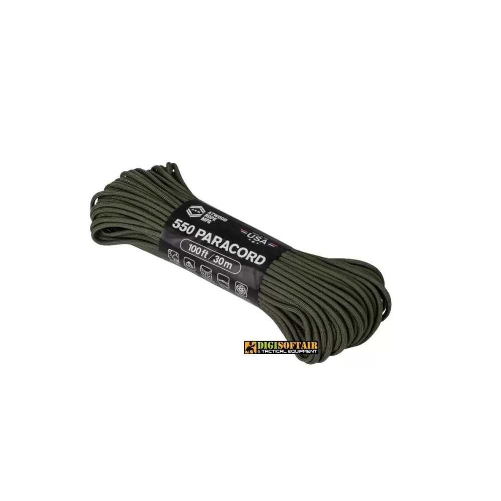 Paracord Atwood Rope MFG Olive drab 30m è un cavo di nylon resistente e duraturo prodotto da Atwood Rope MFG. Questo cavo, lungo 30 metri, ha una capacità di trasporto peso di 250 kg (550 libbre) e presenta sette anime in guaina di nylon. È fabbricato negli Stati Uniti e offre una lega solida e una resistenza ai raggi UV.