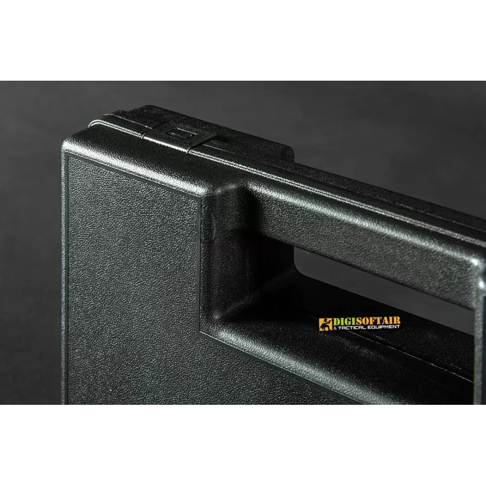 La costruzione robusta in materiale resistente agli urti garantisce una protezione eccellente, mentre la chiusura con serratura offre ulteriore sicurezza per evitare aperture accidentali. È dotata di uno strato interno in schiuma EVA pretagliata, che si adatta perfettamente alla forma della pistola, garantendo una tenuta salda durante il trasporto.