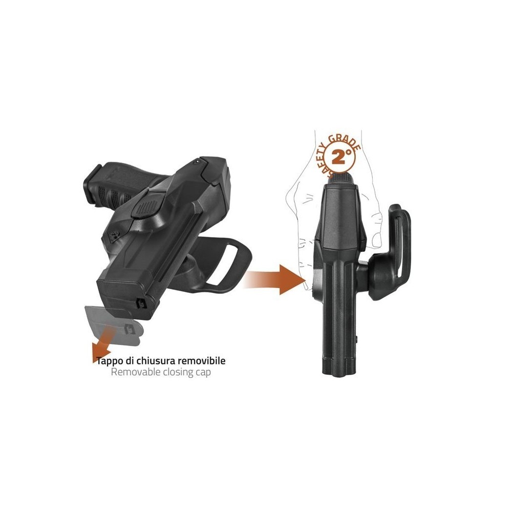 Tipologia: fondina duty esterna in polimero termoformato (iniezione).