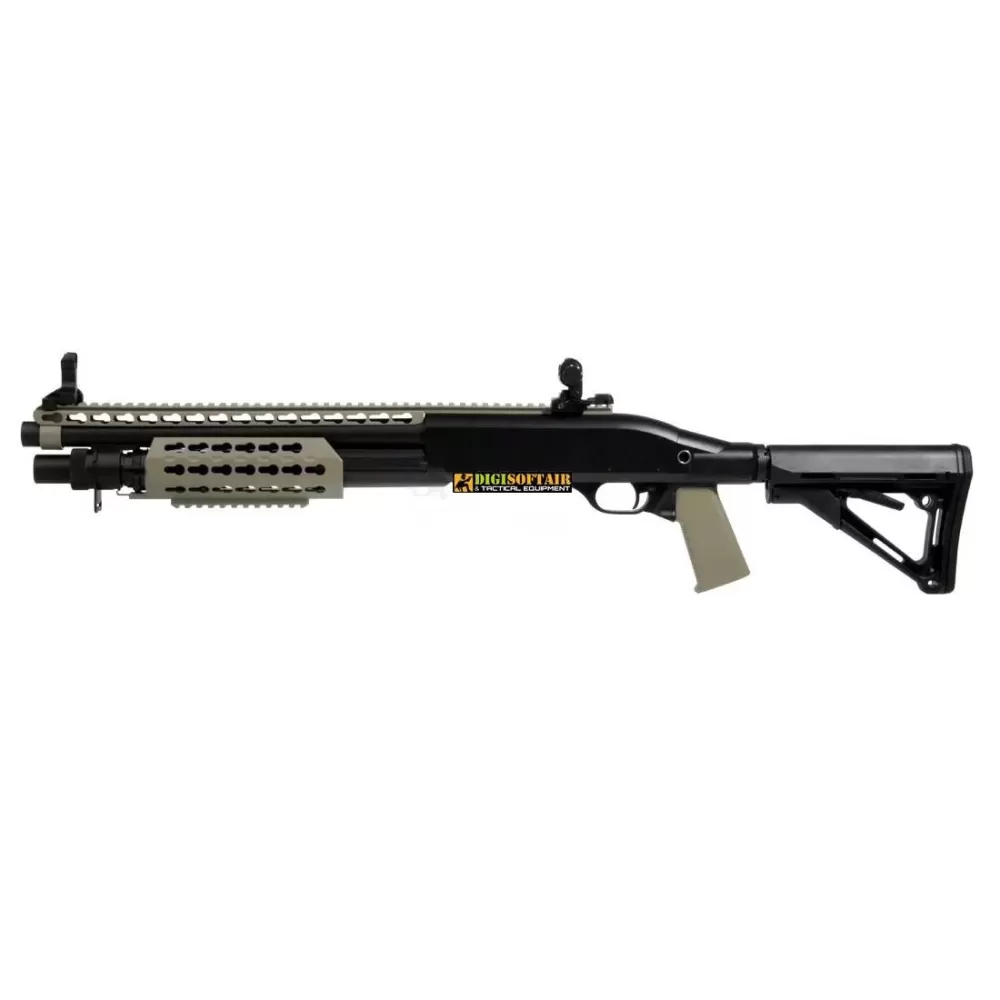 Fucile a Pompa Secutor Arms, modello Velites S V, Nero e Tan con calcio tipo M4 CRANE regolabile