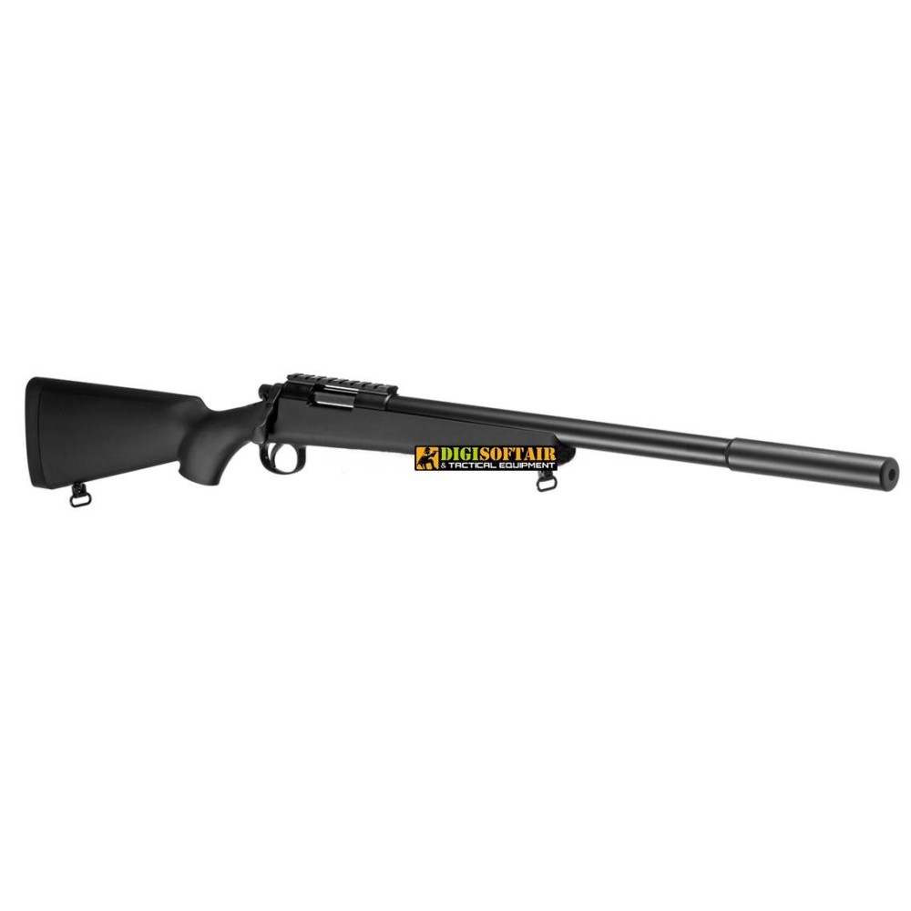 Il cilindro in alluminio con pistone in PVC sviluppa circa 90 m/s out of the box, garantendo potenza e precisione. La canna corta, ma precisa, consente lunghe gittate con estrema precisione. Questo fucile da cecchino è il più pratico, robusto e utilizzato al mondo nei campi di softair.