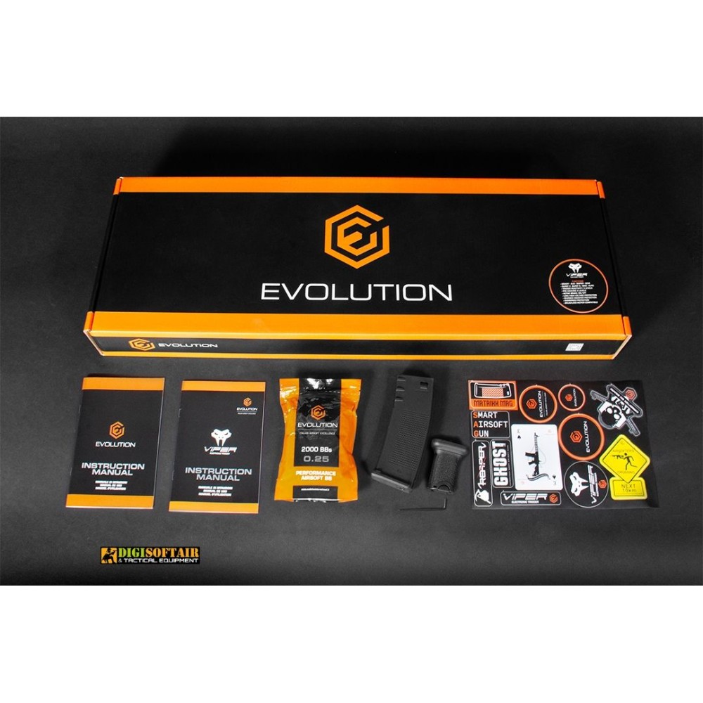 Replica Evolution Ghost 3.0 Viper M (MHS-4002): body Carbontech, handguard in alluminio CNC, ETS IV VIPER programmabile, caricatore Matrixx 140 BB — pronta per il campo.