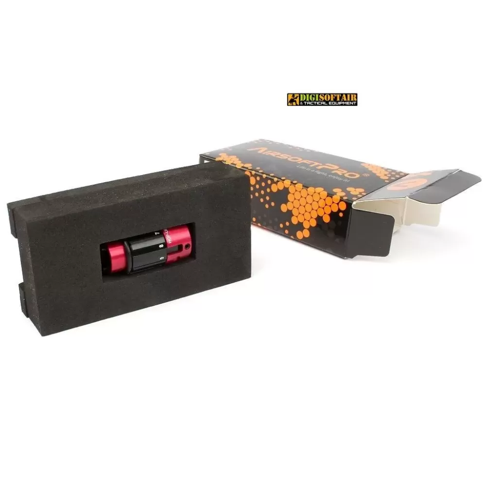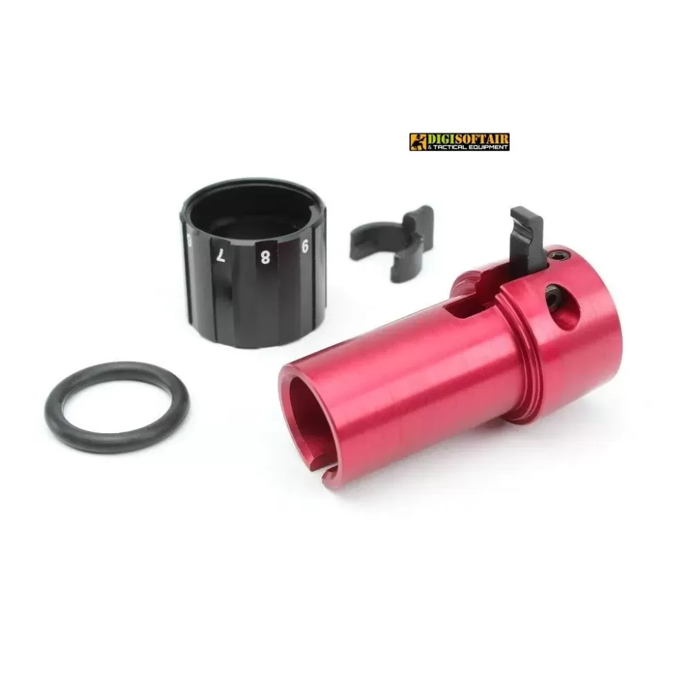 La Gen.2 mantiene la qualità costruttiva in alluminio lavorato CNC e introduce un sistema di regolazione tramite ghiera, che permette un controllo preciso del tiro. Inoltre, la leva Hop-Up in metallo consente l'uso di rulli pressori aftermarket, offrendo una personalizzazione avanzata e una rotazione più stabile dei pallini.