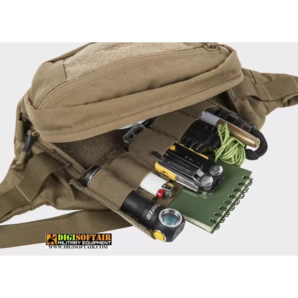 Un pratico marsupio di medie dimensioni dalla nostra linea "marsupiale" offre una serie di caratteristiche uniche in un marsupio liscio e a basso profilo. L'utente può scegliere la posizione delle fibbie, riporre la cinghia della borsa, rimuovere o sostituire l'inserto in velcro interno personalizzandolo per diverse applicazioni. Il design con quattro tasche è abbastanza ampio da contenere oggetti personali insieme a forniture mediche di base o una giacca a vento. Le ali laterali del bandicoot consentono l'attacco di tasche PALS/MOLLE o altri accessori.