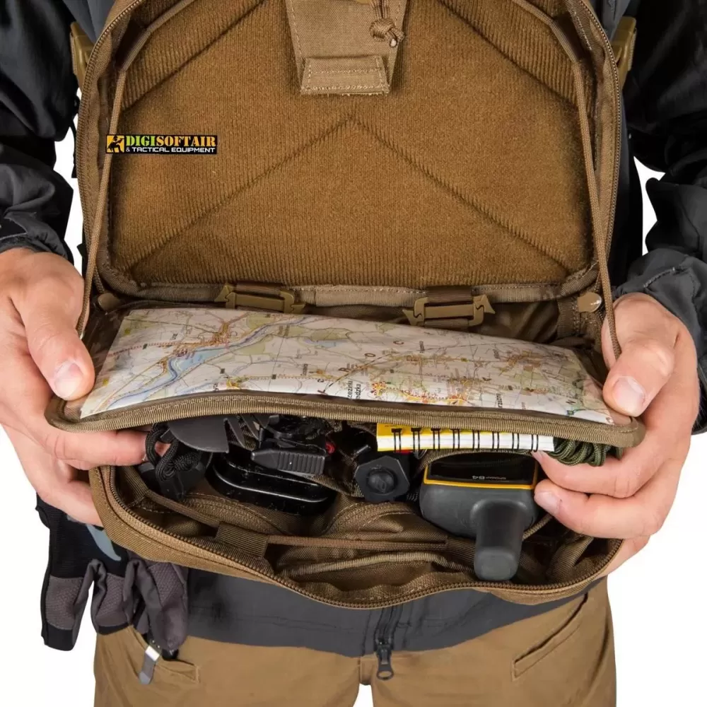 Grazie ad esso puoi trasportare tutto il necessario sul petto, mentre numerose tasche esterne ed interne ti aiutano a organizzare tutto. Inoltre, una delle pareti interne è rivestita in morbido velluto compatibile con inserti VIS. L'organizer interno rimovibile con tasca per mappe trasparente facilita la navigazione. I limitatori di cavo resistente offrono un angolo di apertura fino a 90 gradi. Il design dell'imbragatura minimalista ma confortevole non interferirà con nessun tipo di tracolla per zaino. I punti di montaggio esterni, compatibili con MOLLE / PALS, offrono la possibilità di espandere il pacco torace in base alle proprie esigenze.