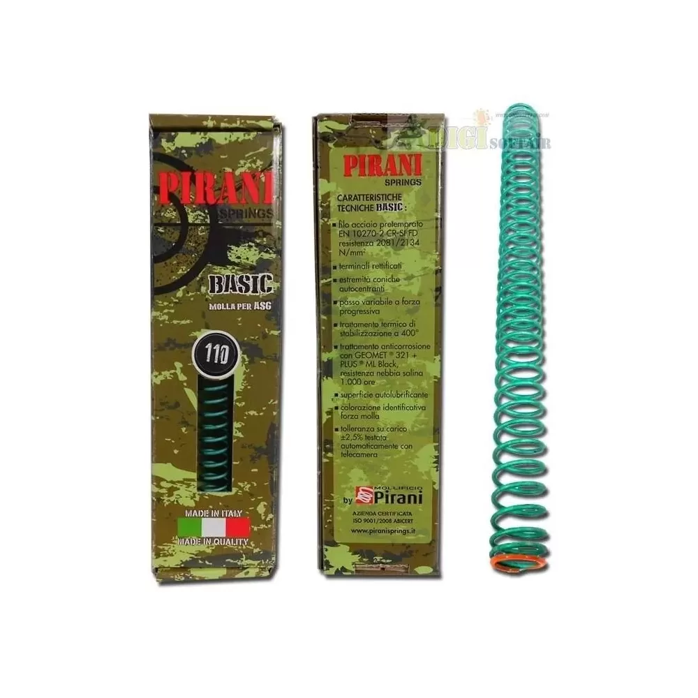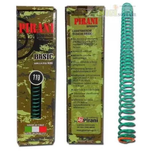 Molle made in Italy, con superficie di appoggio rettificata ed autocentrante, colorazione identificativa forza molla. Trattamento anticorrosione, molla a passo variabile Costruita con acciaio pretemprato. Le molle sono state testate su VFC M4 modiifcato con due cuscinetti, corsa normale, canna da 270mm, hop up scarico e pallini da 0,20gr dando i valori espressi dalla molla