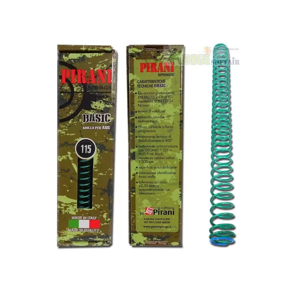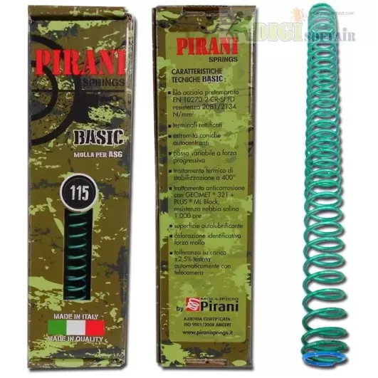 Molle made in Italy, con superficie di appoggio rettificata ed autocentrante, colorazione identificativa forza molla. Trattamento anticorrosione, molla a passo variabile Costruita con acciaio pretemprato. Le molle sono state testate su VFC M4 modiifcato con due cuscinetti, corsa normale, canna da 270mm, hop up scarico e pallini da 0,20gr dando i valori espressi dalla molla