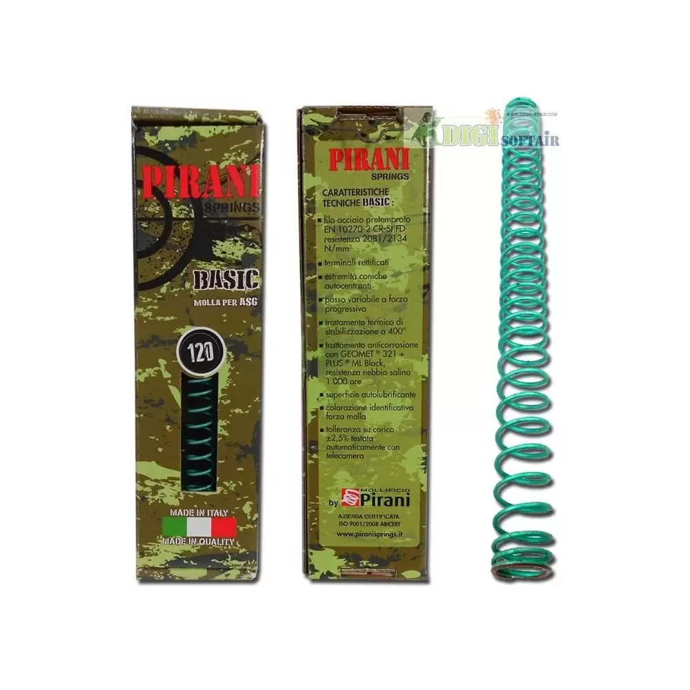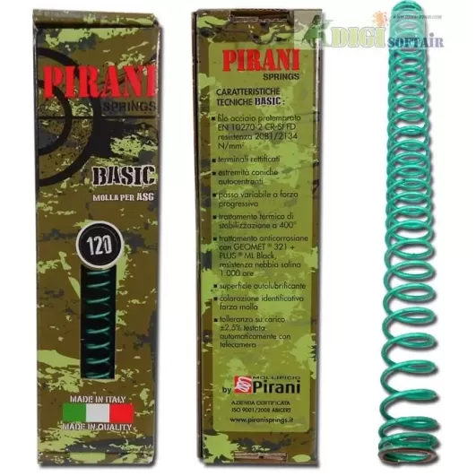 Molle made in Italy, con superficie di appoggio rettificata ed autocentrante, colorazione identificativa forza molla. Trattamento anticorrosione, molla a passo variabile Costruita con acciaio pretemprato. Le molle sono state testate su VFC M4 modiifcato con due cuscinetti, corsa normale, canna da 270mm, hop up scarico e pallini da 0,20gr dando i valori espressi dalla molla