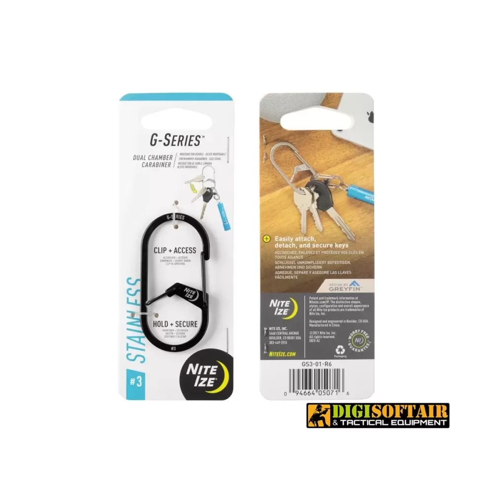 Nite Ize G-Series Dual Chamber Carabiner 3 SS Black, GS3-01-R6