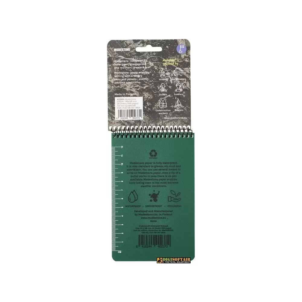 Modestone Millitary Model Notepad Green 96x148 100 pagine a quadretti A33MIL NATO stock number: 7530-58-001-3859