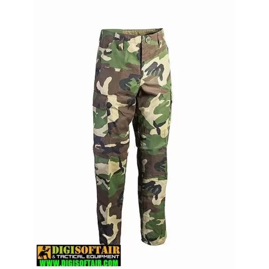 Pantalone tattico costruito in POLYCOTTON RIPSTOP ( 60% cotone – 40% poliestere ) che presenta frontalmente 2 taschine nella parte alta con rinforzo ( ad esempio per il coltello ), una piccola tasca nella parte destra atta a riporre oggetti di ridotte dimensioni e dei passanti per la cintura molto ampi, chiusura con bottone e zipp YKK; inoltre in vita ci sono dei tiretti laterali per una corretta regolazione della circonferenza.