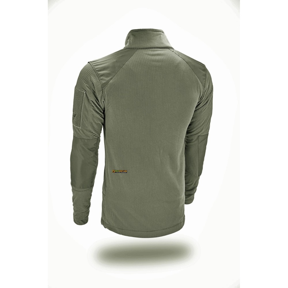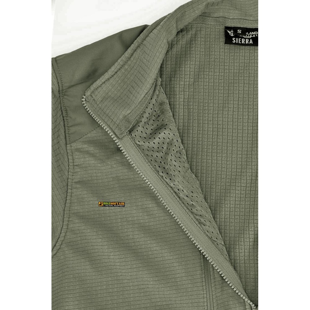La Giacca Sierra in colore OD e prodotta da Openland Tactical Srl ed e concepita come mid layer tecnico per attivita outdoor e operative. Il tessuto e 100 percento poliestere con fodera interna in rete che favorisce isolamento termico senza intrappolare umidita, garantendo comfort durante luso prolungato.