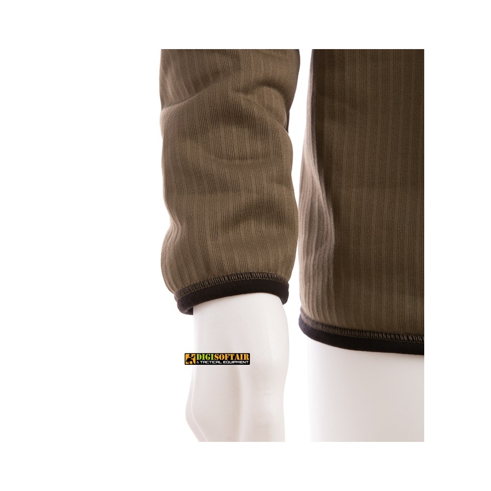 La vestibilità aderente segue i movimenti naturali del corpo senza costrizioni, rendendo questo capo ideale sotto abbigliamento tattico, outdoor o da lavoro. Il collo con apertura a zip consente di regolare la ventilazione in modo rapido e preciso in base all’intensità dell’attività e alle condizioni climatiche. Una soluzione concreta per chi cerca isolamento termico, comfort continuo e funzionalità reale sul campo.