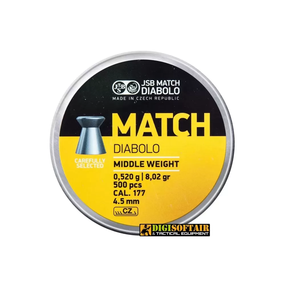 La serie JSB Diabolo - MATCH è principalmente destinata al tiro a segno a 10 metri. Per questo motivo, sono dotati di una testa piatta che garantisce la penetrazione di colpi perfettamente rotondi e precisi nei bersagli di carta. Sono disponibili in una vasta gamma di varianti di peso e diametro, in modo da poter essere scelti in modo ideale per ciascuna arma individuale.