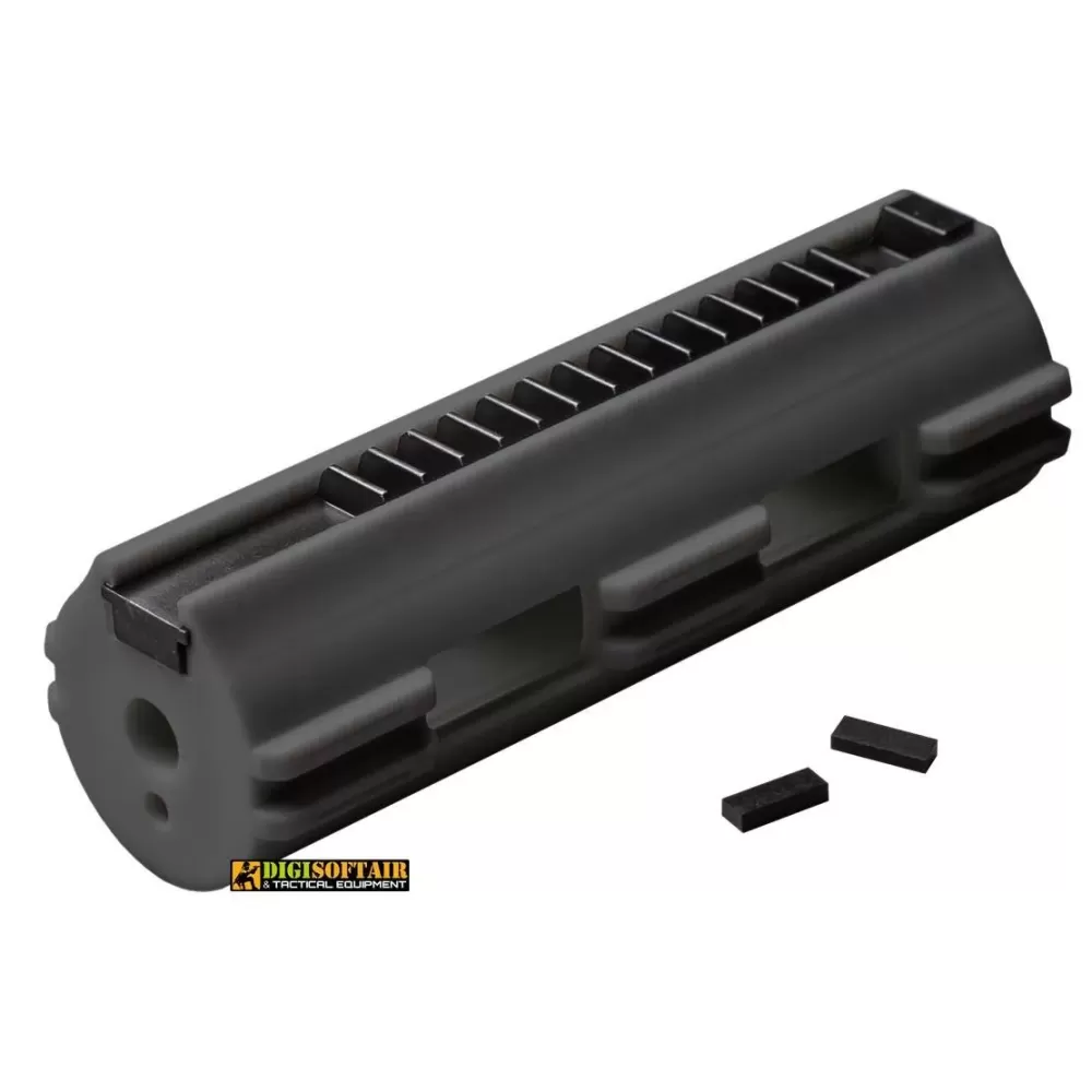 Pistone per repliche da softair alleggerito con corpo in tecnopolimero caricato fibra di carbonio e cremagliera con tutti i denti in metallo dotato del sistema brevettato ZERO-SHOCK (PM03CF), Peso: 15.2 grammi