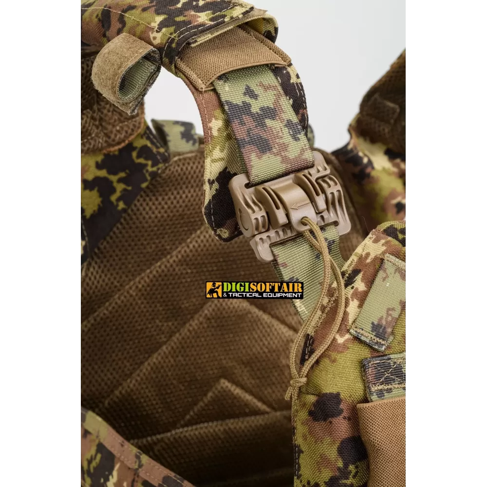Il plate carrier Defcon5 Storm BAV23 in Vegetato Italiano è progettato per chi cerca una soluzione tattica versatile, robusta e comoda. Realizzato in nylon 1000 Denier con cuciture rinforzate e sistema a sgancio rapido ROC/40 in POM, offre pannello staccabile per tre caricatori 5.56×45 mm, tasche per piastre balistiche anteriori e posteriori, MOLLE laser-cut e regolazioni ergonomiche per una calzata precisa e confortevole.