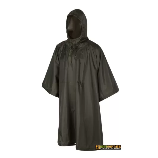 Poncho antipioggia ad asciugatura rapida, realizzato in poliestere rip-stop. Ha bottoni automatici che consentono di realizzare maniche o collegare due poncho insieme. Il cappuccio è dotato di un cordino di regolazione