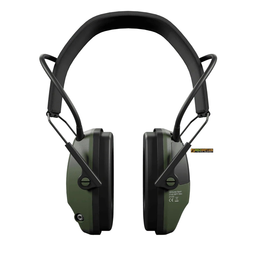 DEFY Slim Basic: cuffie richiudibili ISOtunes con Tactical Sound Control™, SNR 27 dB, autonomia fino a 300 ore e ingresso AUX. Protezione uditiva compatta, leggere e progettate per tiro, caccia e lavoro in ambienti rumorosi.
