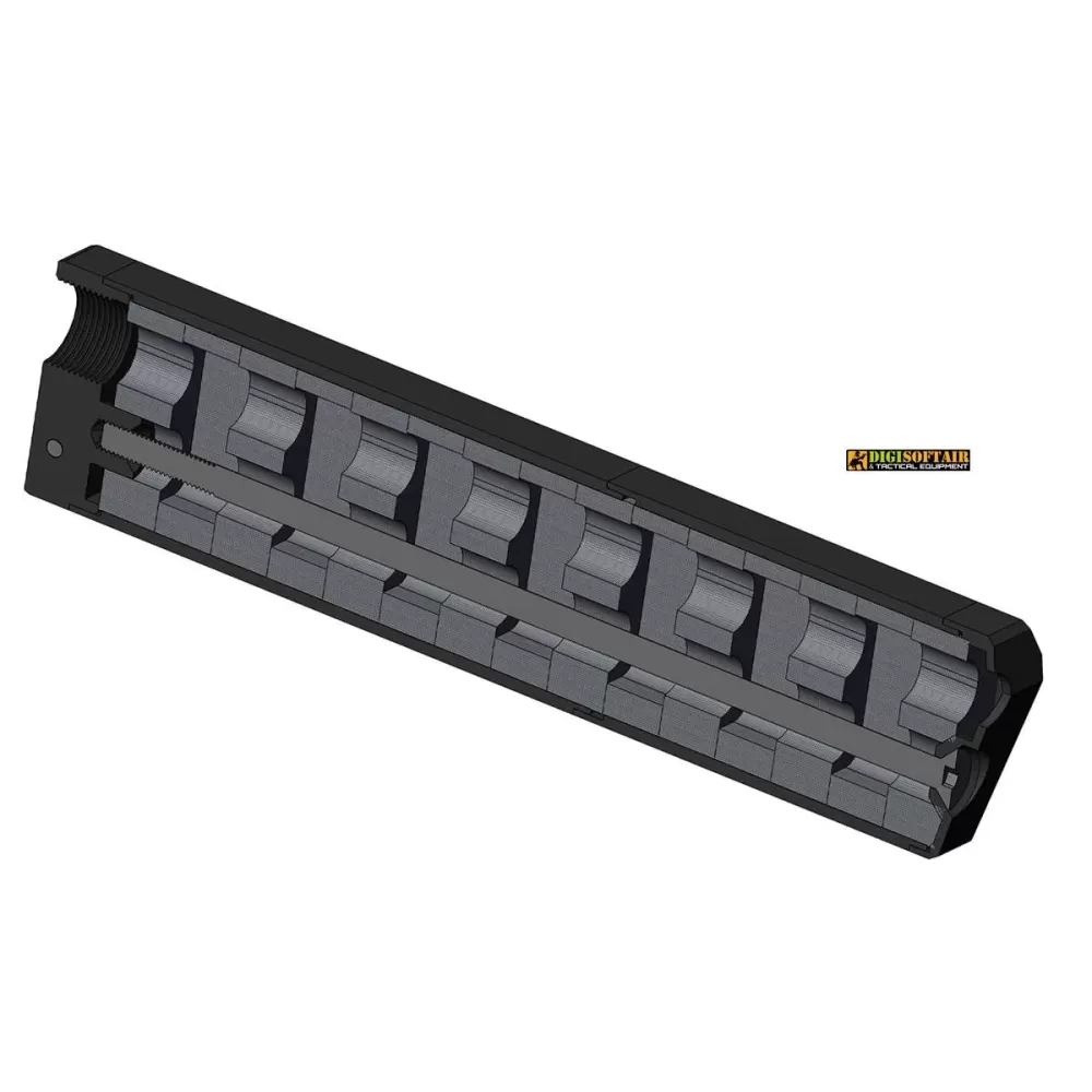 Questo suppressor permette di ottenere una migliore visibilità durante il tiro, abbassando l'effetto luminoso e rendendo l'esperienza di gioco più immersiva. Inoltre, la sua struttura modulare offre la possibilità di adattare la lunghezza e l'efficacia silenziatrice in base alle specifiche esigenze operative.
