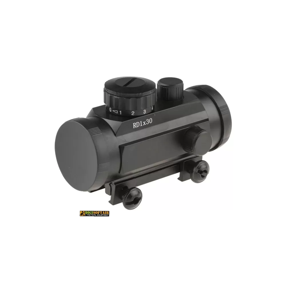 Il mirino Red Dot 1x30 R/G GFA-10-012669 è un'ottica di alta qualità progettata per una rapida acquisizione e precisione del bersaglio. Questo mirino a punto rosso presenta un ingrandimento 1x e un obiettivo da 30 mm, fornendo un ampio campo visivo e un'eccellente trasmissione della luce.