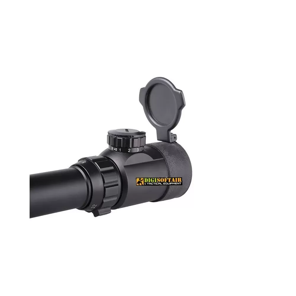 l'ottica presenta una regolazione regolare sia in verticale che in orizzontale. Il punto di mira rosso o verde consente il funzionamento sia di giorno che di notte (alimentato da una batteria CR2032). Insieme a un oculare con un diametro di 40 mm e uno zoom regolabile di 3,5-10x, consente di mirare e sparare anche in condizioni di visibilità molto bassa e a lunga distanza.