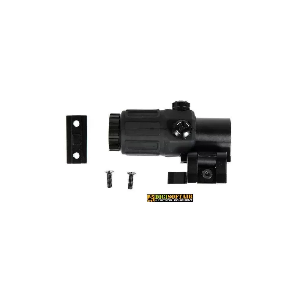 Una lente d'ingrandimento Aim-O solida realizzata interamente in metallo, che garantisce elevata durata e resistenza a fattori esterni. Grazie all'assemblaggio QD nello standard RIS / Picatinny, il mirino può essere installato su qualsiasi replica con una guida standard da 22 mm.