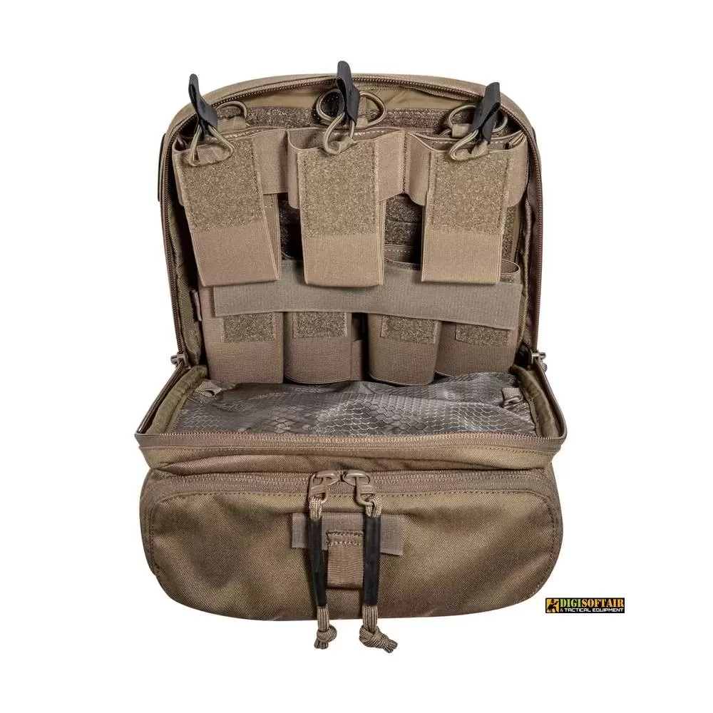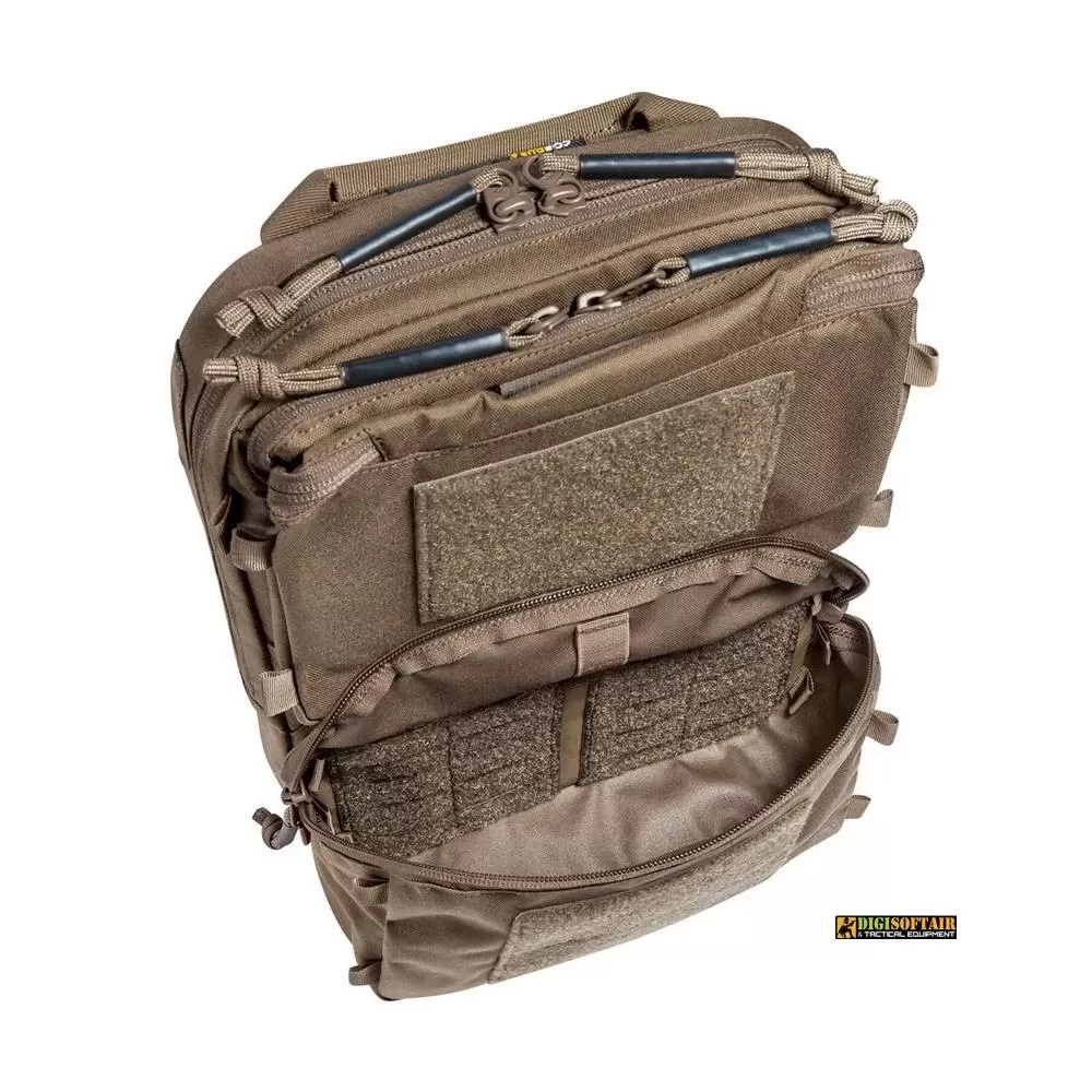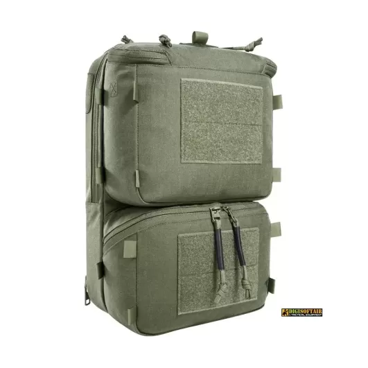 Lo Zaino Tasmanian Tiger Operator Pack ZP è progettato appositamente per il Plate Carrier QR LC ZP di TT, con l'attacco tramite cerniere laterali. L'zaino può anche essere montato su altri plate carriers sul mercato con la lunghezza e la larghezza delle cerniere appropriate. Inoltre, la striscia MOLLE con cerniera inclusa consente di fissarlo a plate carriers con lo stesso schema MOLLE dell'articolo 7500. Un adattatore aggiuntivo è incluso per il fissaggio a cinghie MOLLE classiche. Lo zaino ha un vano principale piatto, dotato di preparazione per un sistema di idratazione e la cui parete posteriore è coperta da MOLLE hook-and-loop per l'equipaggiamento individuale. Dispone anche di due ampie tasche frontali. La tasca superiore anteriore è dotata di inserti intercambiabili per caricatori. I componenti modulari possono anche essere fissati nel vano principale.