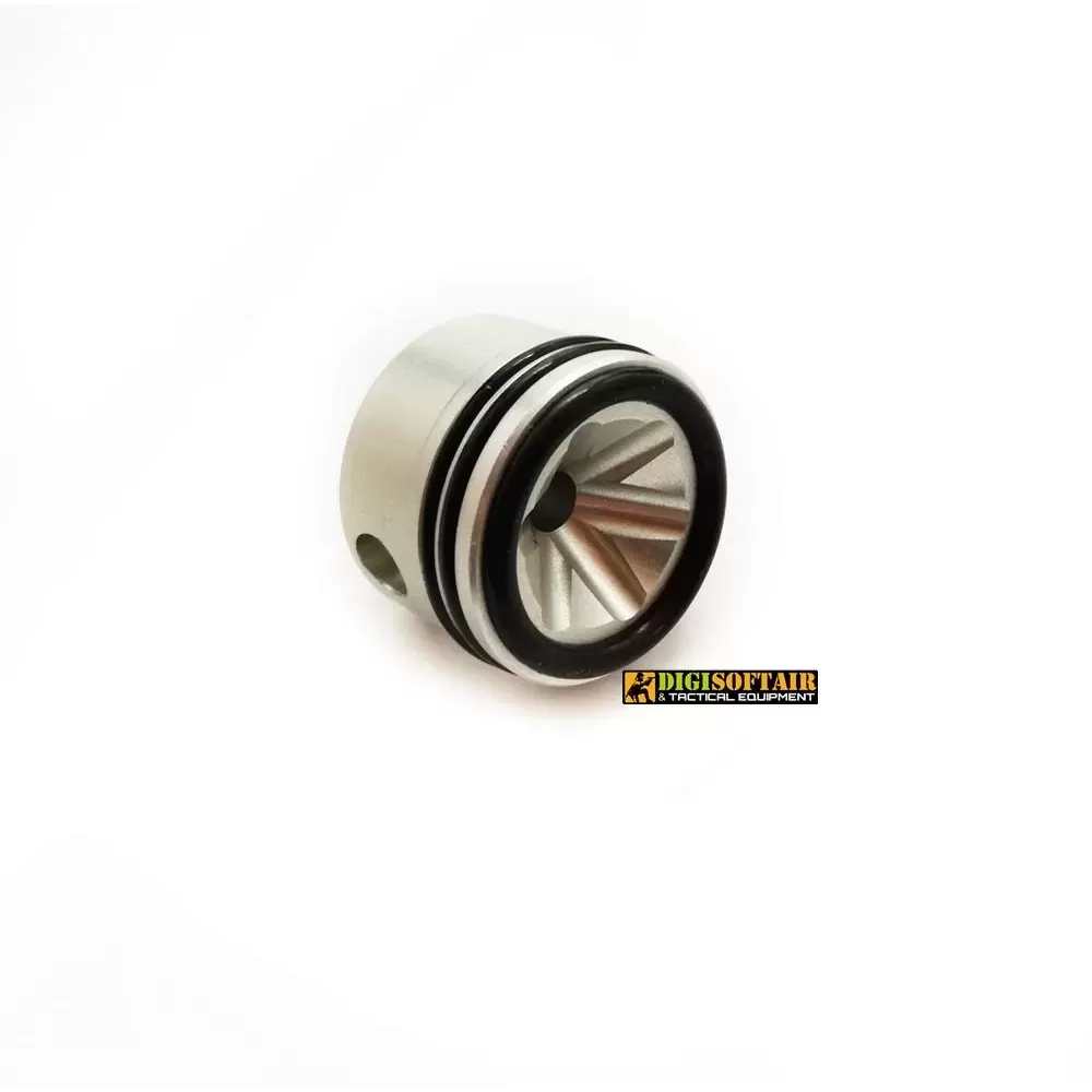 Realizzata in Ergal 7075 con lavorazione CNC, presenta nella parte inferiore un cono di diametro maggiore con un angolatura ben marcata in grado di indirizzare verso l’ugello il flusso di aria ed è studiato per adattarsi perfettamente alla testa pistone.