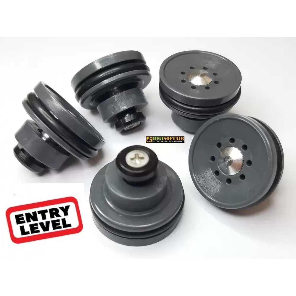 Testa pistone pensata per chi cerca silenziosità e reattività nelle repliche ad alta cadenza: la superficie battente ridottissima (TPAVP) minimizza il rumore d’impatto, mentre il design alleggerito riduce lo stress meccanico su pistone e gruppo battente. La particolare conformazione conica della parte battente evita che i fori di ventilazione vengano coperti dalla gomma di battuta della testa cilindro, mantenendo un corretto antivuoto senza cali di potenza. Fornita completa di rondella in tecnopolimero caricata per migliorare tenuta e durabilità; ideale per tuning ad alta ROF, upgrade silenziosi e manutenzioni mirate.