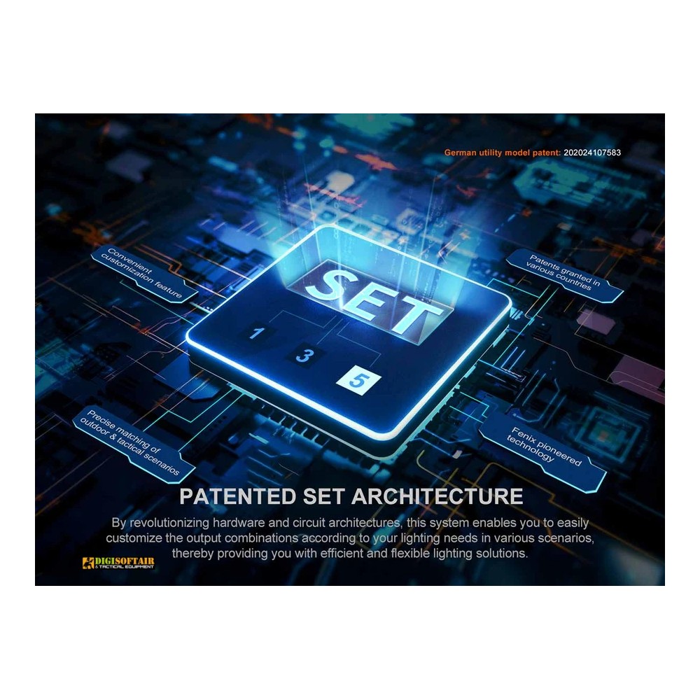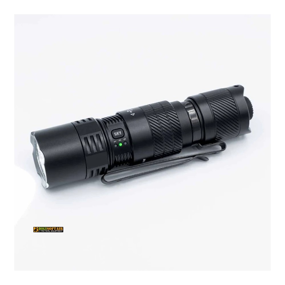 Il design è studiato per l’uso quotidiano e operativo: interruttore tattico posteriore per attivazione istantanea, selettore al collo torcia per passare le uscite, e il pulsante nascosto SET per scegliere tra tre preset (1, 3 o 5 uscite) e disattivare lo strobe se necessario — utile per adattare il comportamento della torcia a esigenze EDC, tattiche o professionali. La PD26R ACE include indicatore stato batteria all’avvio, avviso di tensione bassa e protezione contro l’inversione di polarità.