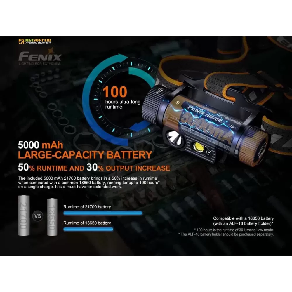 Torcia frontale ricaricabile Fenix HM70R: 1600 lumen massimi, batteria 21700 inclusa, porta USB-C 2 A e combinazione di LED bianchi e rossi per uso operativo ed escursionismo.